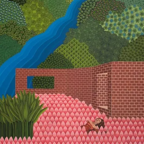 در این آثار، نقاش با بهرهگیری از رنگهای تخت و شفاف و با الهام از نگارگری ایرانی، و با تکرار نقوش هندسی و مناظر خیالی، فضایی همزمان آشنا و خیالگونه را ارائه میدهد.